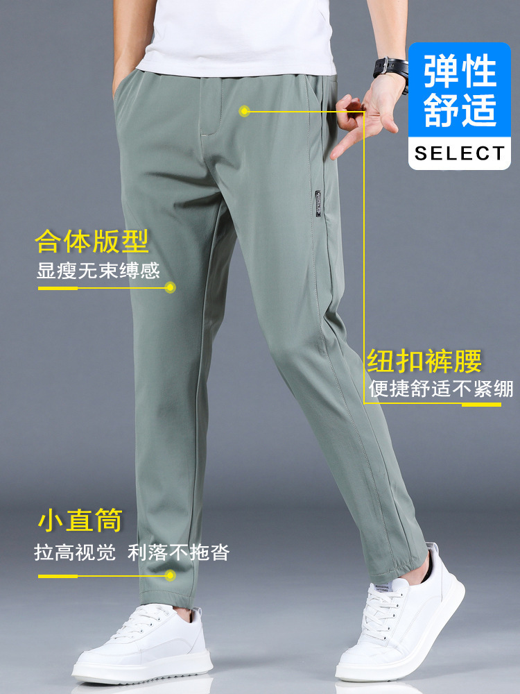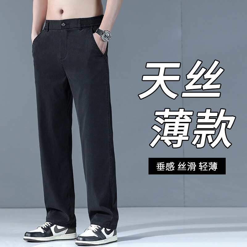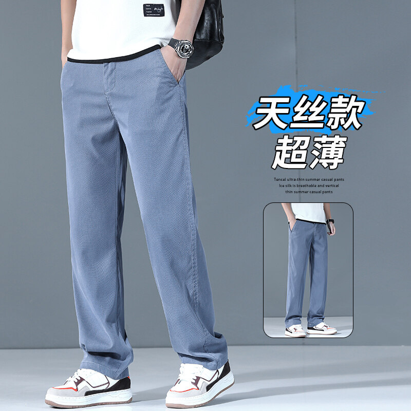 春夏のメンズ薄手シンプルカジュアルパンツ、万能な滑らかでシワになりにくいストレートパンツ、ゆったり着痩せリヨセルテンセルパンツ