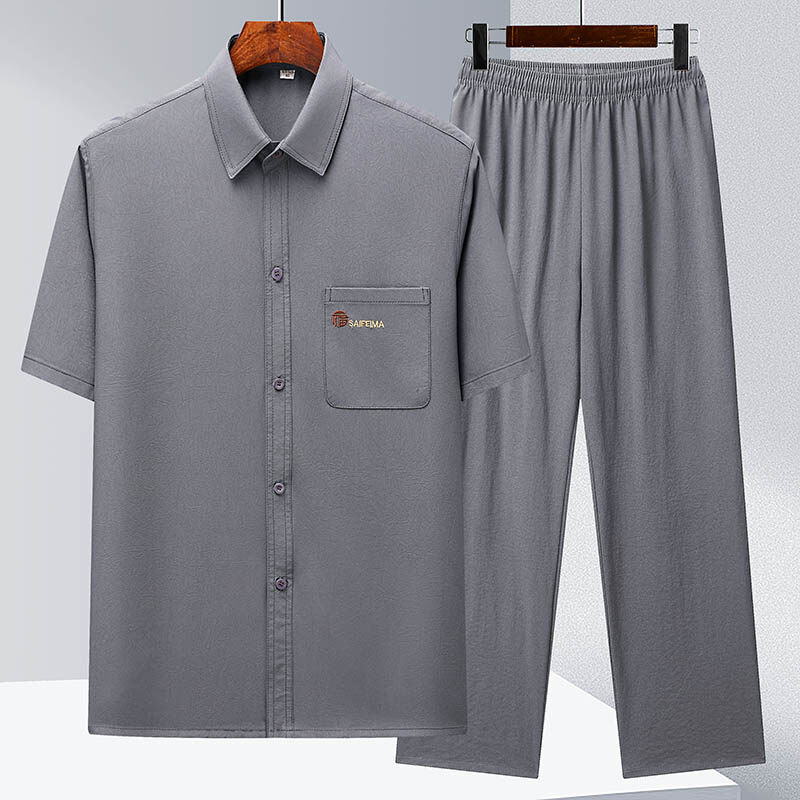 夏メンズお父さん服、中高年半袖シャツ、メンズ薄手おじいちゃん服、ゆったりシャツ、夏ツーピーススーツ