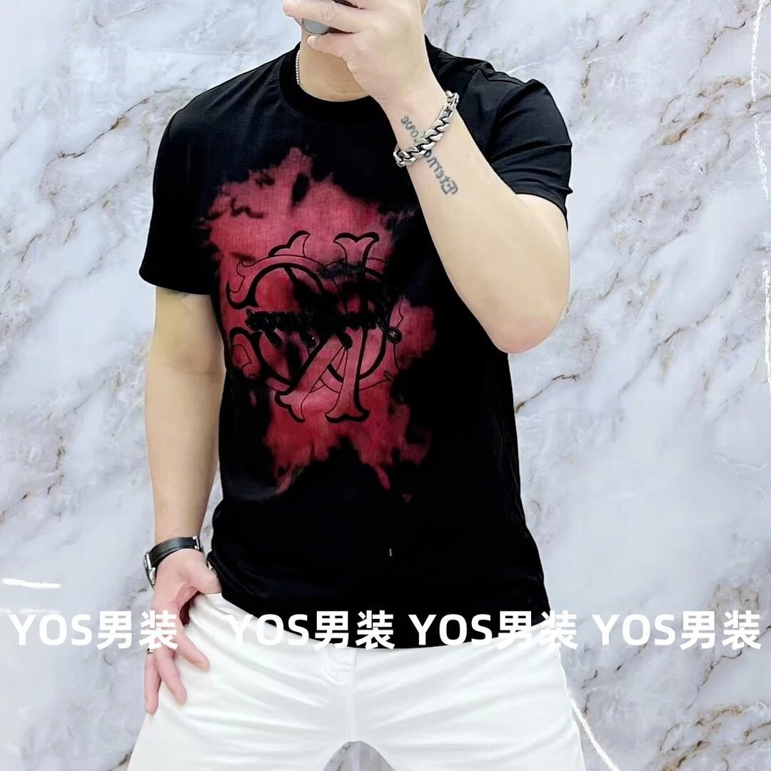 60023-2025 夏新作ヨーロッパ版ラウンドネック半袖 Tシャツメンズトレンディなファッション通気性シャツ
