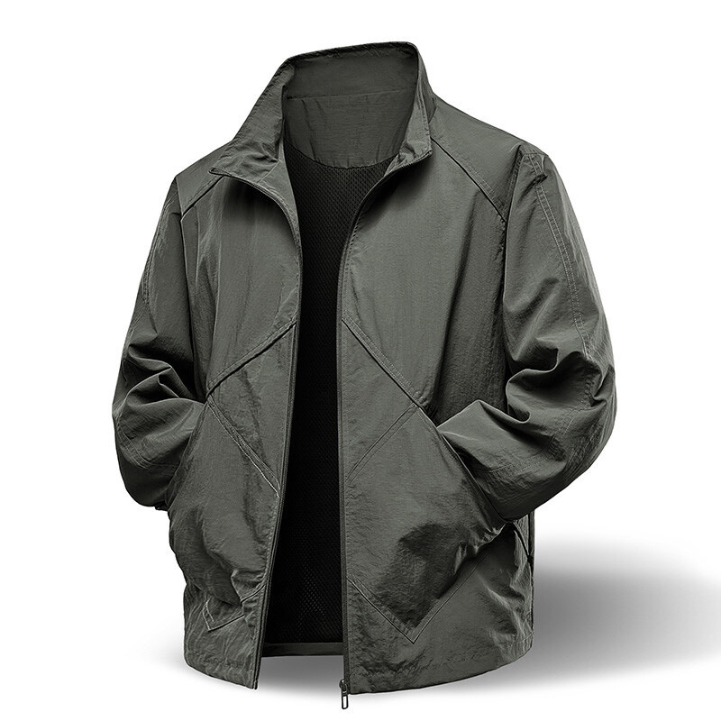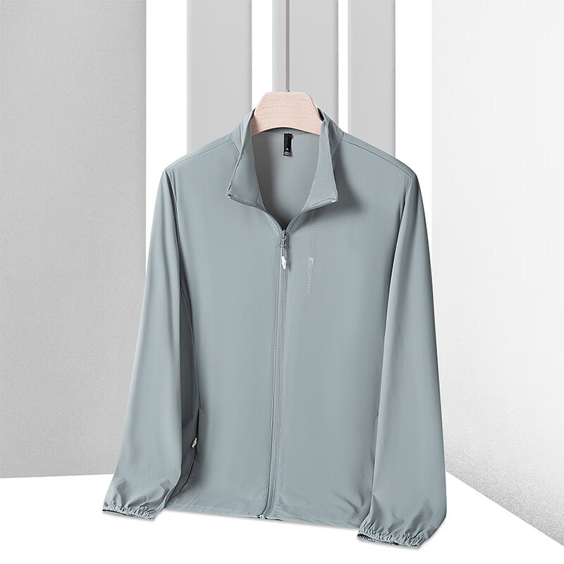 新しい防蚊日焼け止めプラスファットプラスビジネスカジュアルアイスフィールスタンドカラージャケットグレーブルー薄い