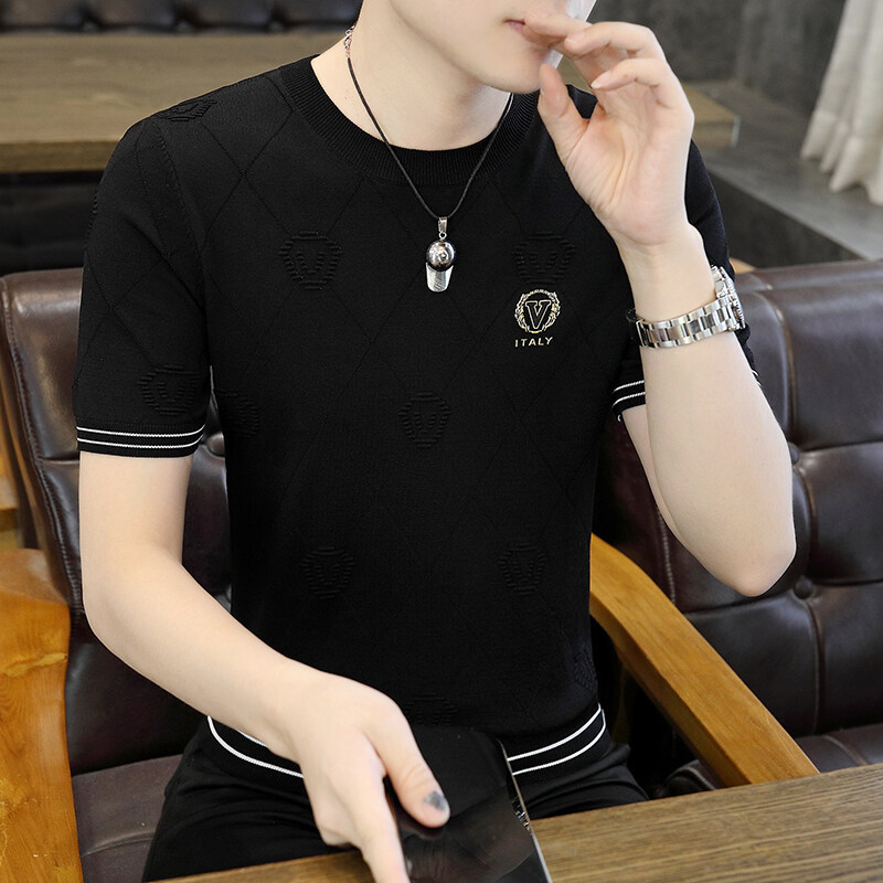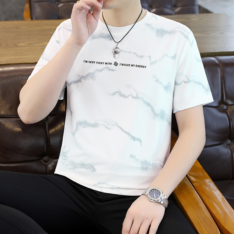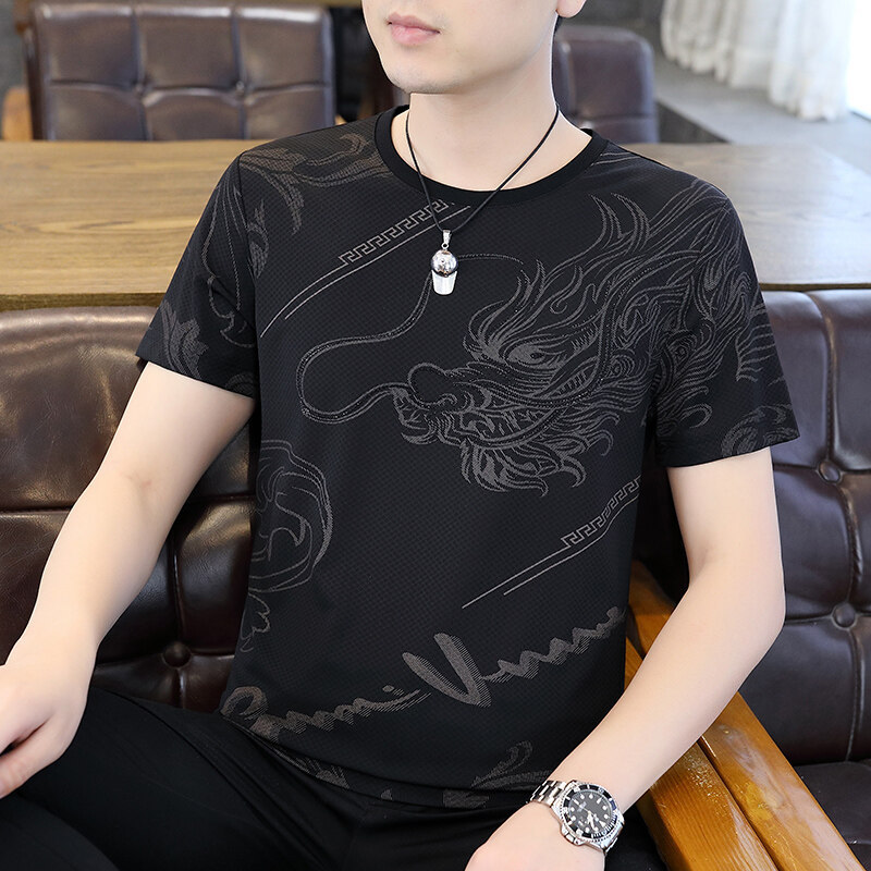 893-2025 夏新作 ラウンドネック半袖Tシャツ メンズ トレンド ファッション 通気性シャツ [4.8]