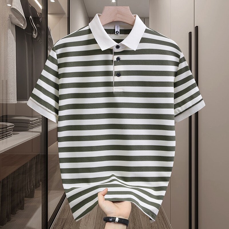 3556-2025 夏新作半袖ポロシャツメンズトレンディファッション通気性ラペルTシャツ[4.8]