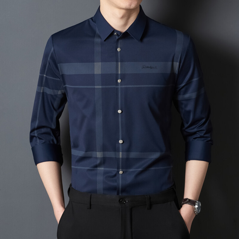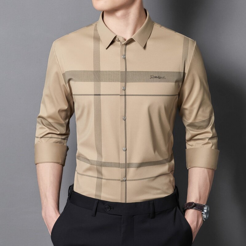 Mr. Taohuo 長袖シャツ メンズ ナイロン 高弾性 シームレス ラミネート ビジネス カジュアル チェック柄 ストライプ スクエアカラー 在庫あり