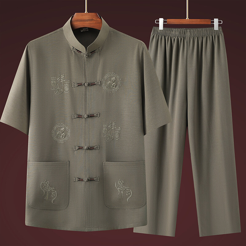 1019 唐スーツ半袖リネン縁起の良い如意6色オプショントップスP25スーツP35.シェニール