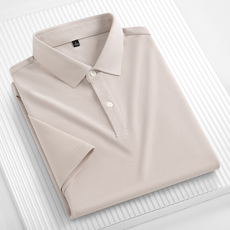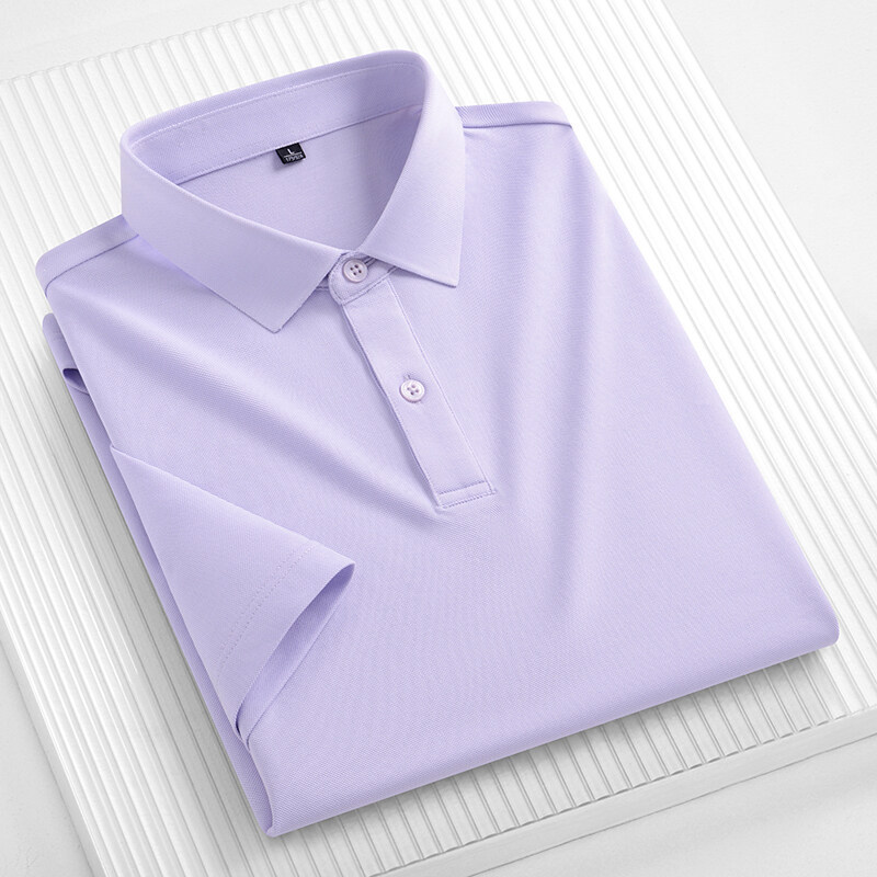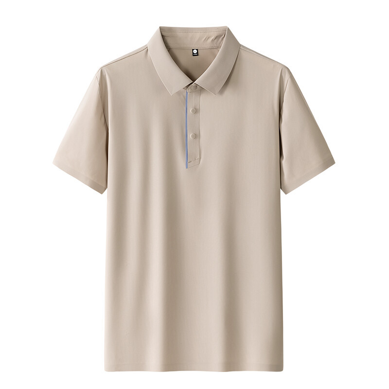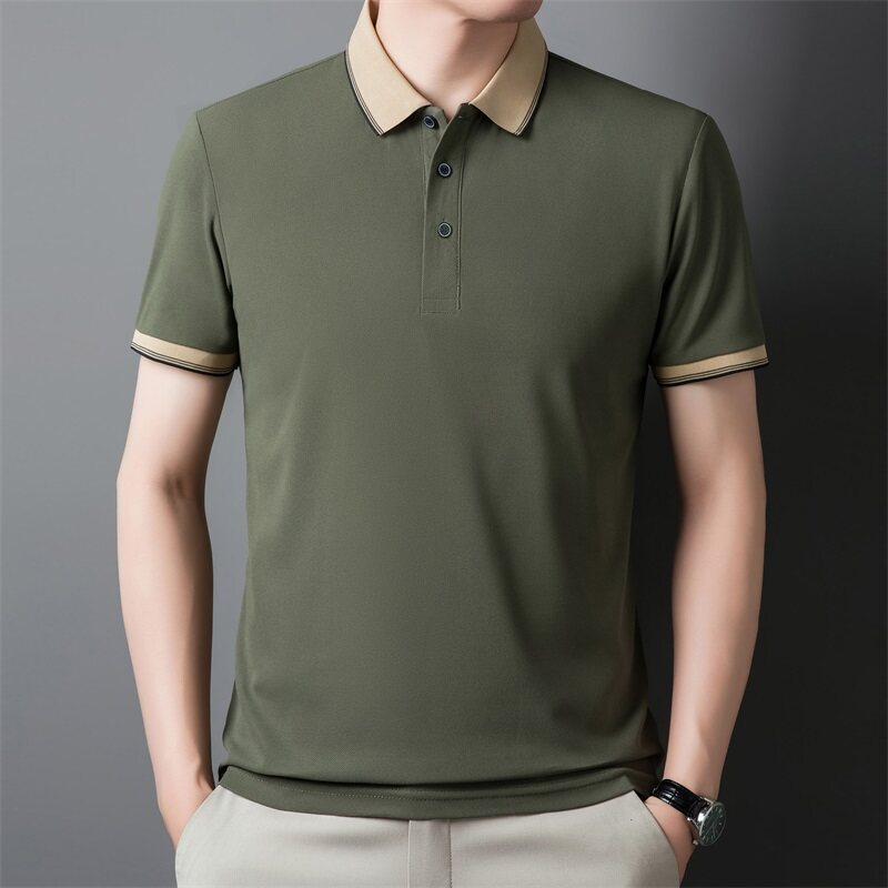 夏アイスシルク半袖ポロシャツメンズファッショントレンドラペルTシャツ