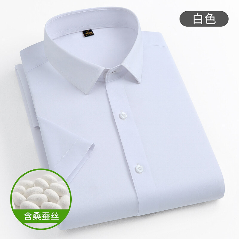 新しいシャツメンズ半袖マルベリーシルクソリッドカラーフォーマルウェアソフト通気性ビジネスホワイトグレー
