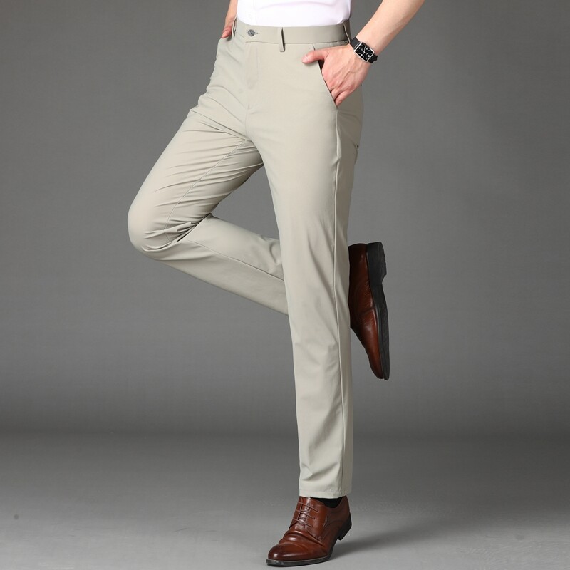 夏の錦アンモニアはやせているミルクの糸のカジュアルな男性の多色のビジネスの品質のファスナーの純色のズボンを現します。