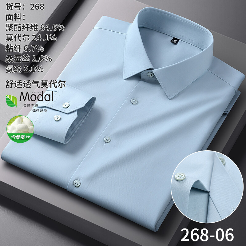 2025 Mr. Taohuo 春の新作長袖シャツメンズマルベリーシルクモーダルビジネスストレッチインチシャツ在庫あり