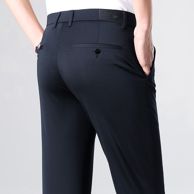 マルベリーシルク高弾性抗シワパンツ薄いビジネスメンズパンツ夏カジュアルパンツ-827ブラックネイビーブルー在庫あり