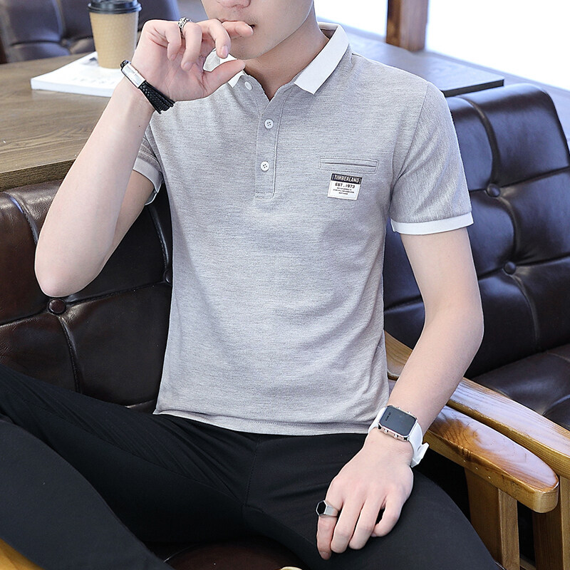 氷糸無痕poloシャツ男夏ファッション百合半袖襟折りシャツ上着tシャツ