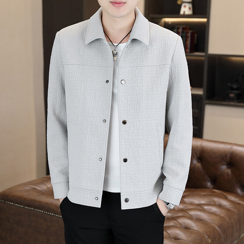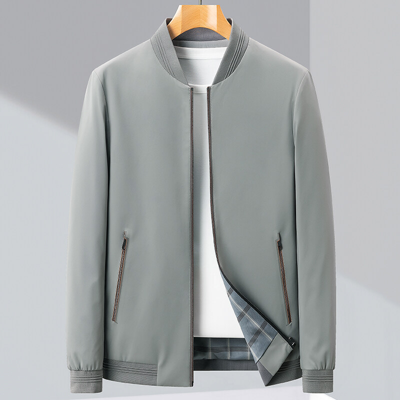 ライトラグジュアリーメンズスタンドカラージャケット2025春秋新作若中年メンズカジュアルシンプルジャケットグレー