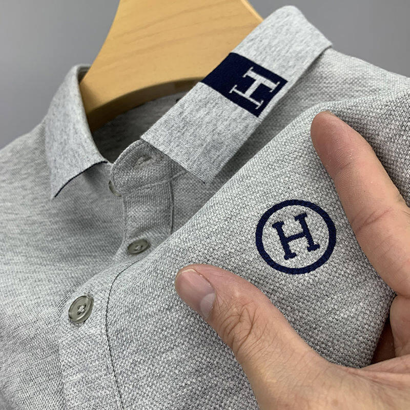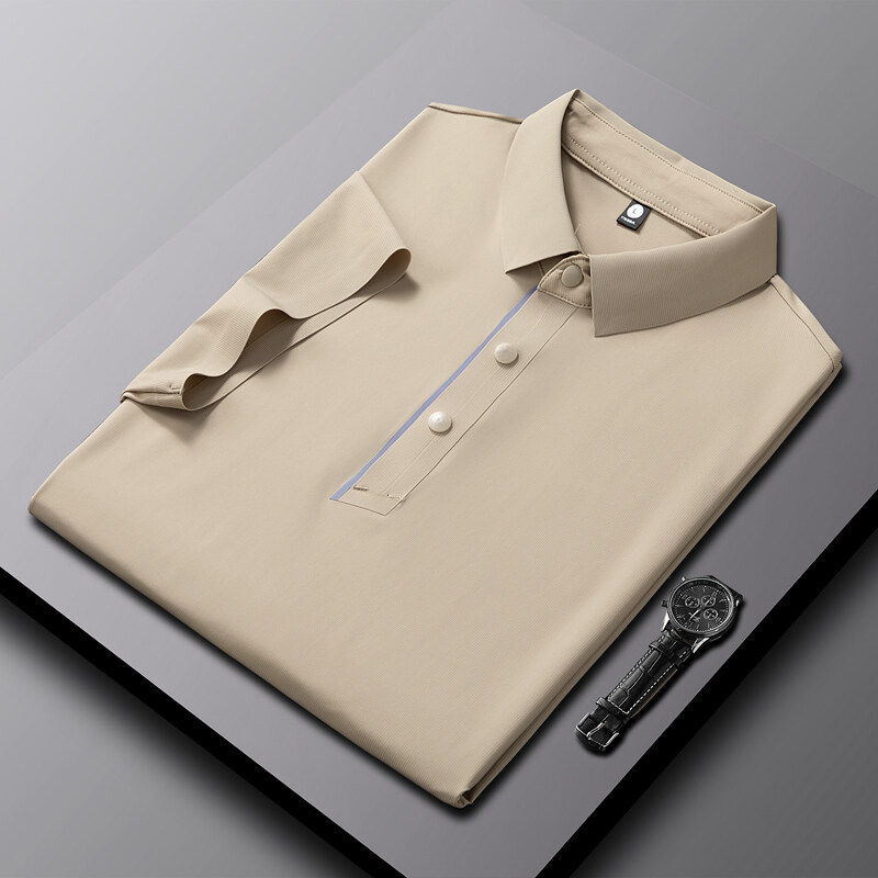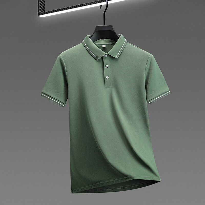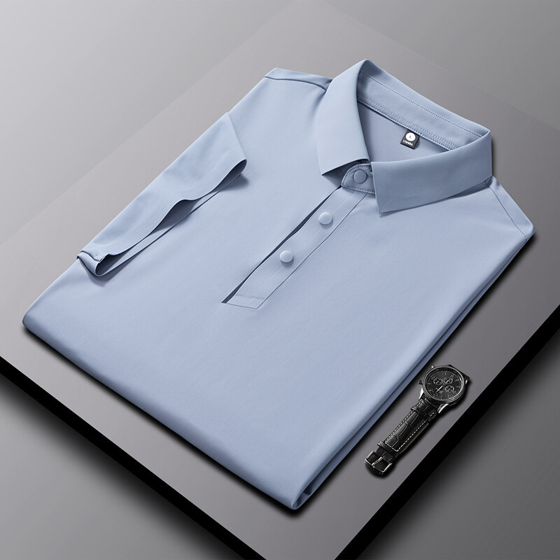 夏アイスシルク半袖ポロシャツメンズファッショントレンドラペルTシャツ