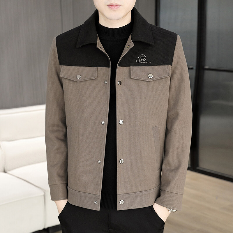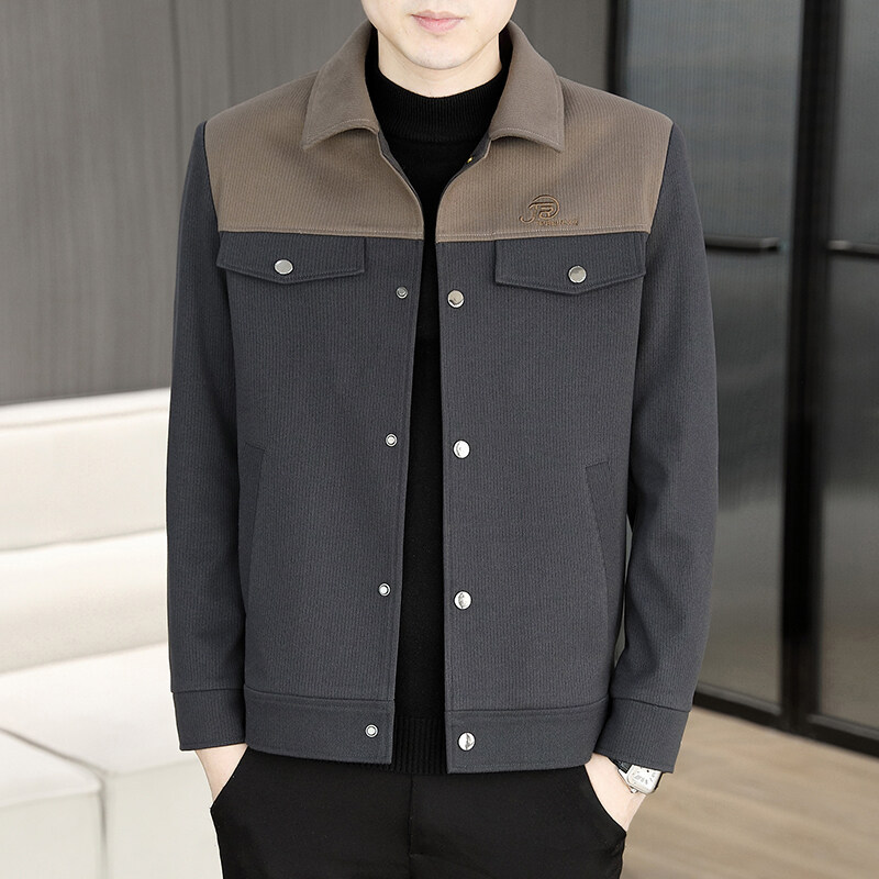 【新商品】春新作 メンズ ラペルパッチワーク ジャケット グレー ブラック 耐摩耗性