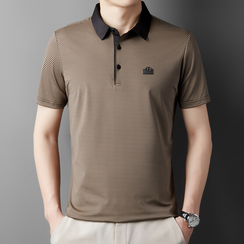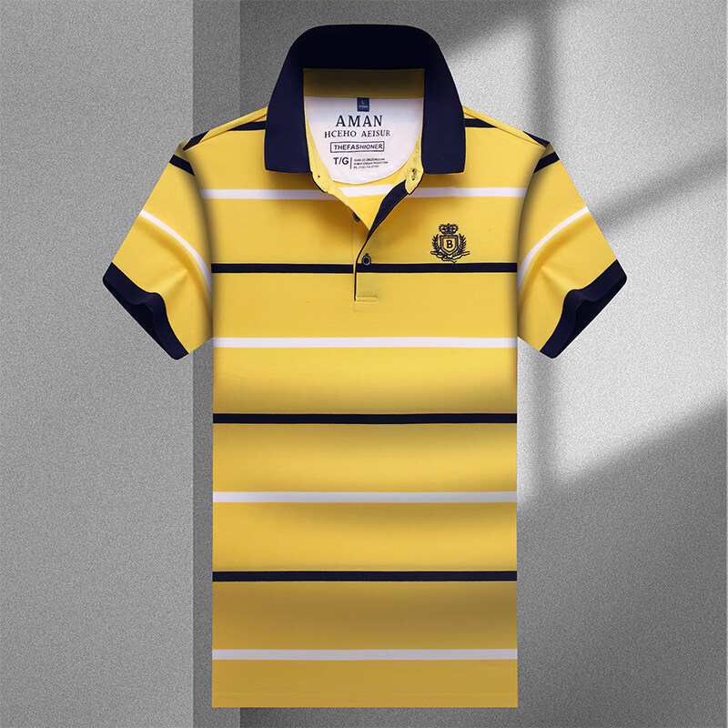25年間の細ストライプ半袖、在庫豊富、グリーン、ネイビーブルー、カーキ、シェニールスパンデックス