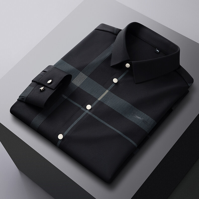 長袖シャツ メンズ ナイロン 高弾性 シームレス ラミネート ビジネス カジュアル チェック柄 ストライプ スクエアカラー 在庫あり