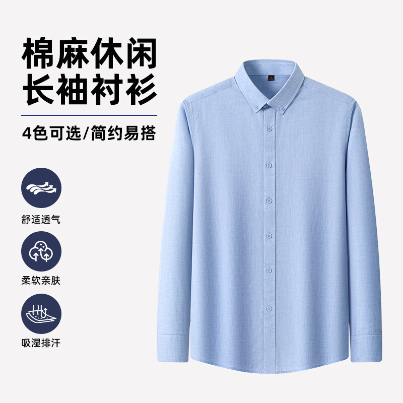 ゴールドラッシュさん春の新しい長袖シャツ男性亜麻ライゼル綿ビジネス高品質シャツ作業服
