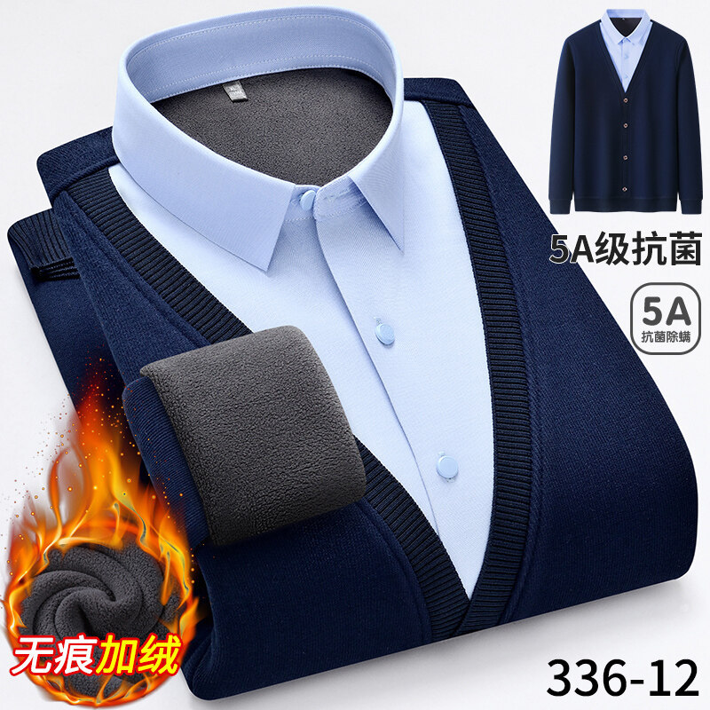 生放送で起爆した保温セーターの偽の2つのベルベットはvネックのシャツを厚くした