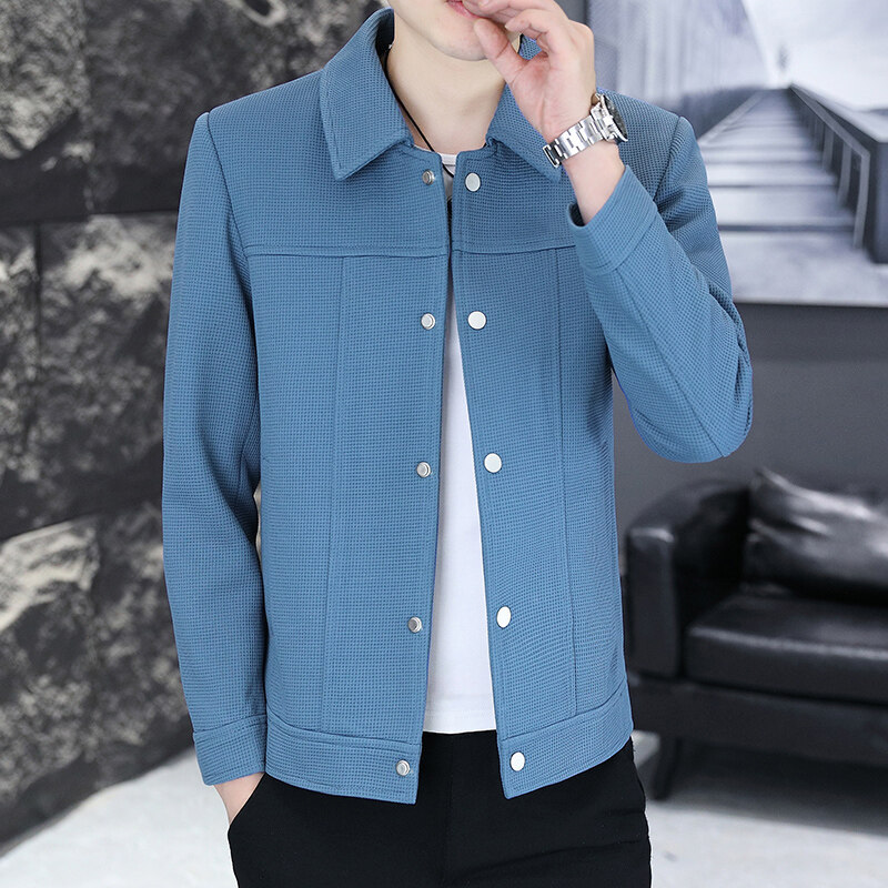 春のワッフルジャケットの襟をめくるファッションのカジュアルな上着