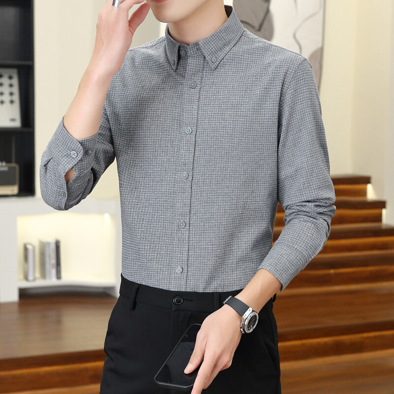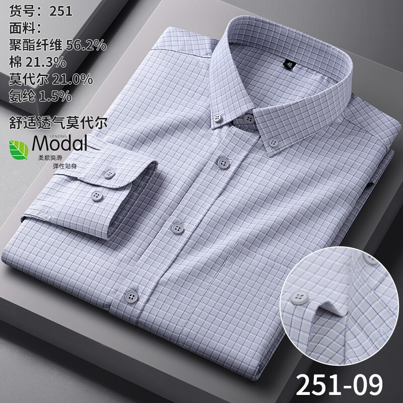 2025ゴールドラッシュさん春の新しい長袖シャツ男性モーデール綿弾力ビジネス純色格子作業服