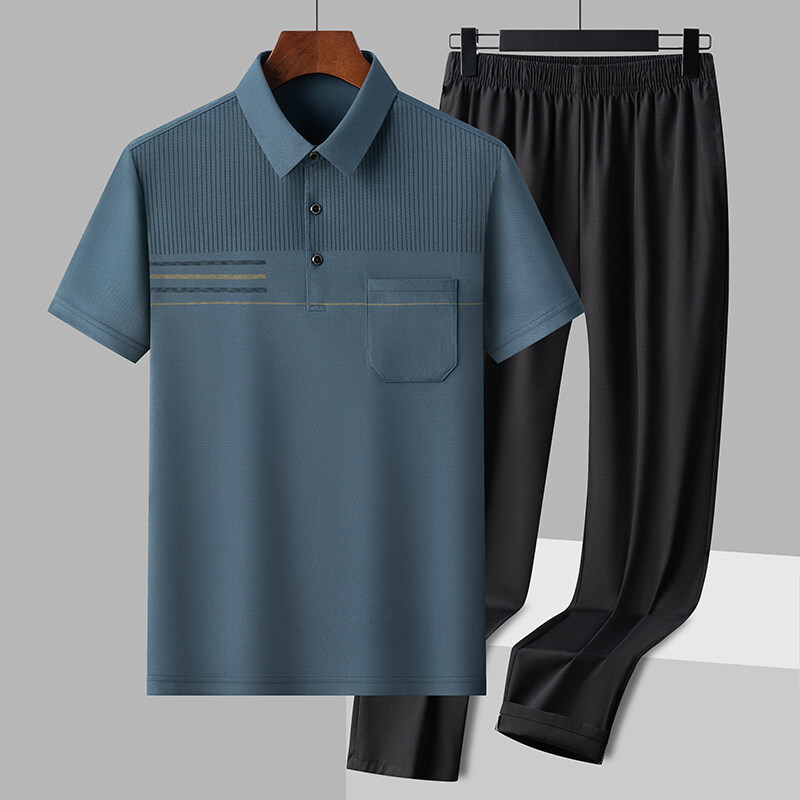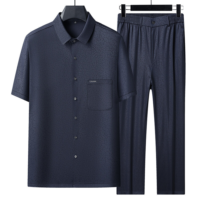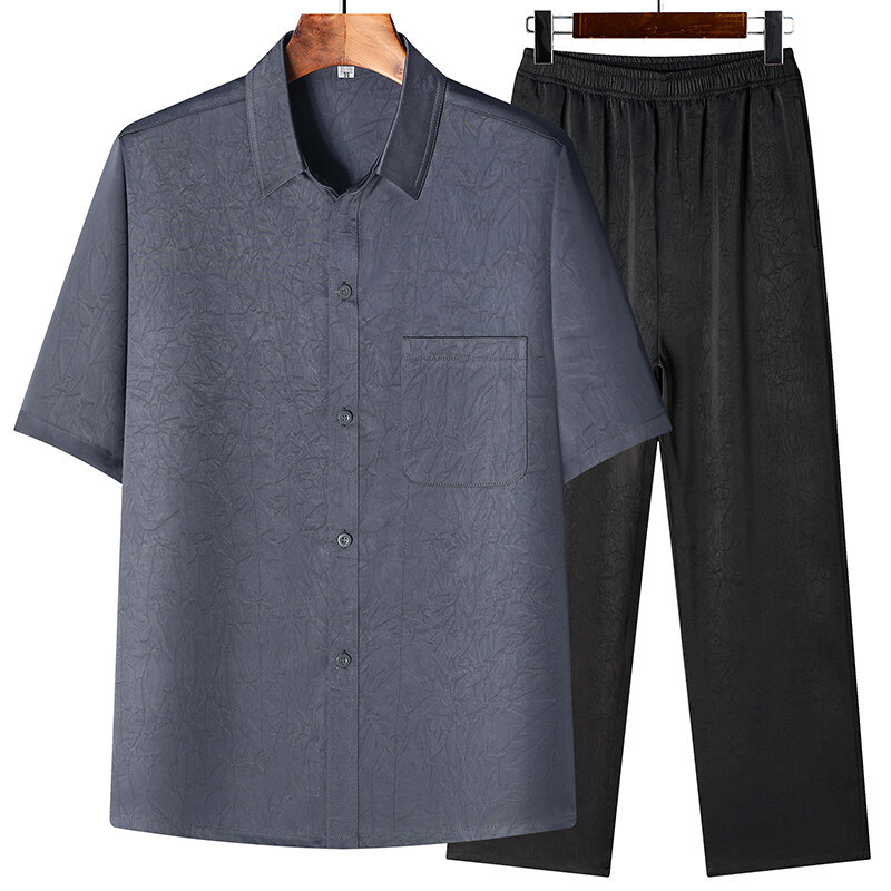[シームレス] 2025 夏の新中高年半袖シャツスーツメンズカジュアルパンツお父さん唐スーツ GQ178