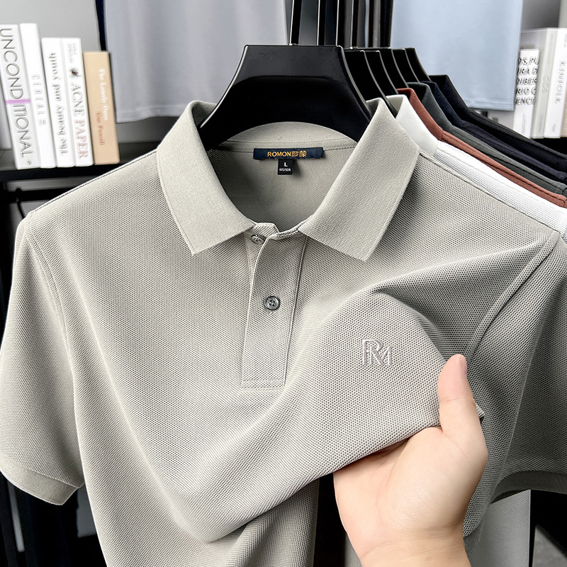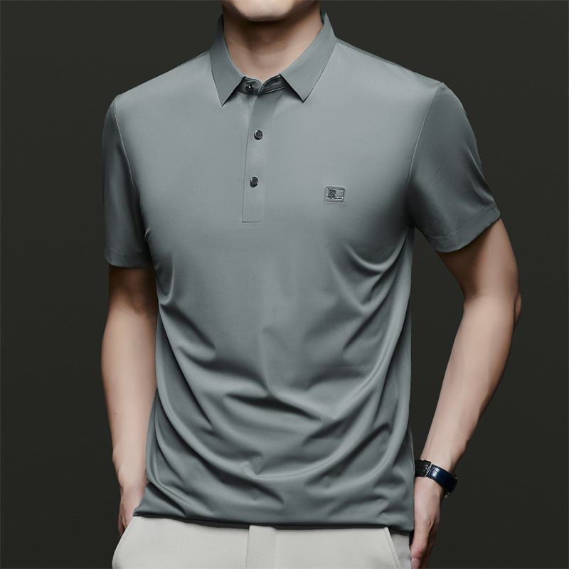 夏シームレスドレープ半袖ポロシャツ氷感通気性ビジネスカジュアル高級紳士服