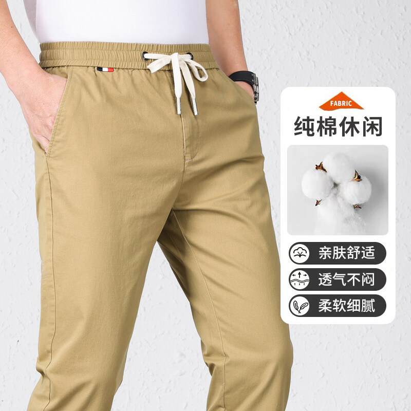 3166 夏ライトビジネスパンツメンズルーズストレート弾性ウエストパンツ