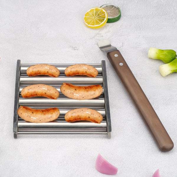 新商品ホットドッグラック腸仔グリル木柄ステンレスbbqホットドッグラック直売卸売りステンレスホットドッグラック