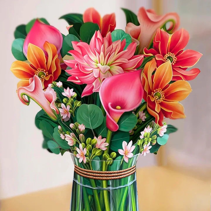 大量の現物3d母の日のグリーティングカードの大きな花束は花のお祝いを手に持っている