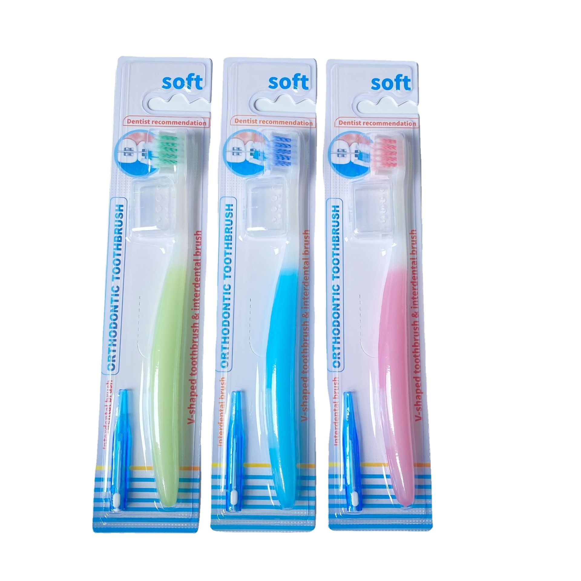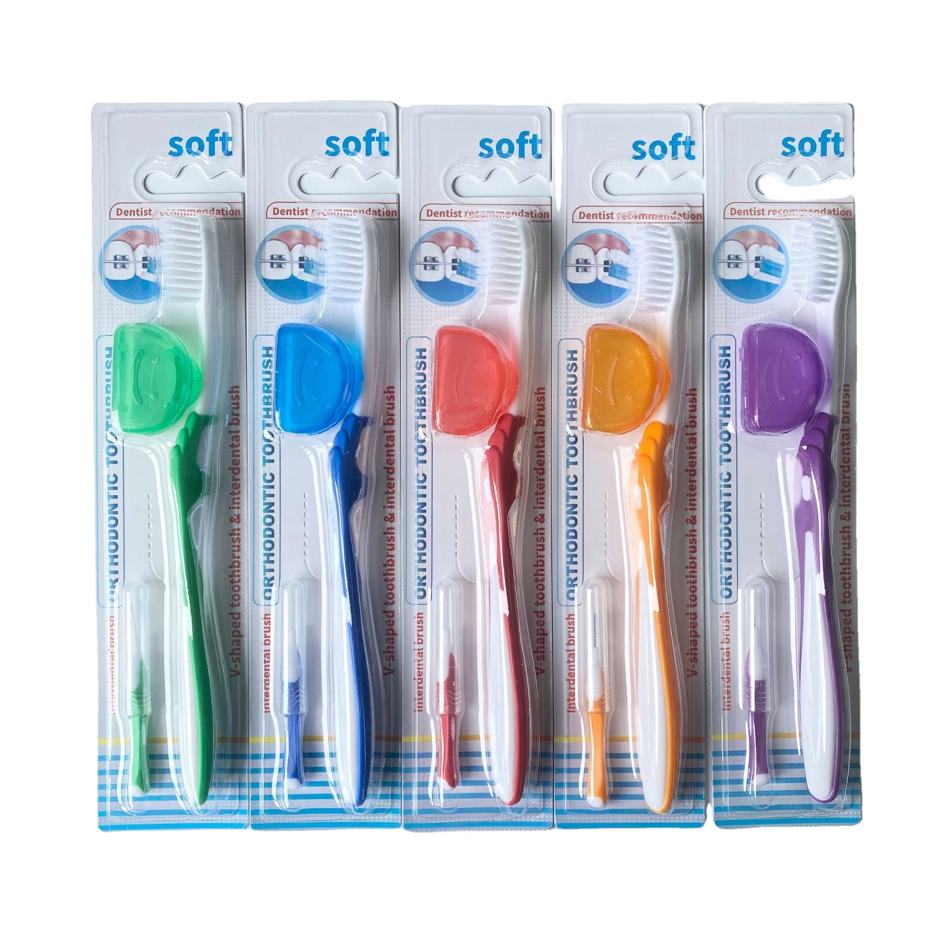 矯正歯ブラシv型歯ブラシ + シース + 歯間ブラシで歯をきれいにし、歯をきれいにし、歯をきれいにします。