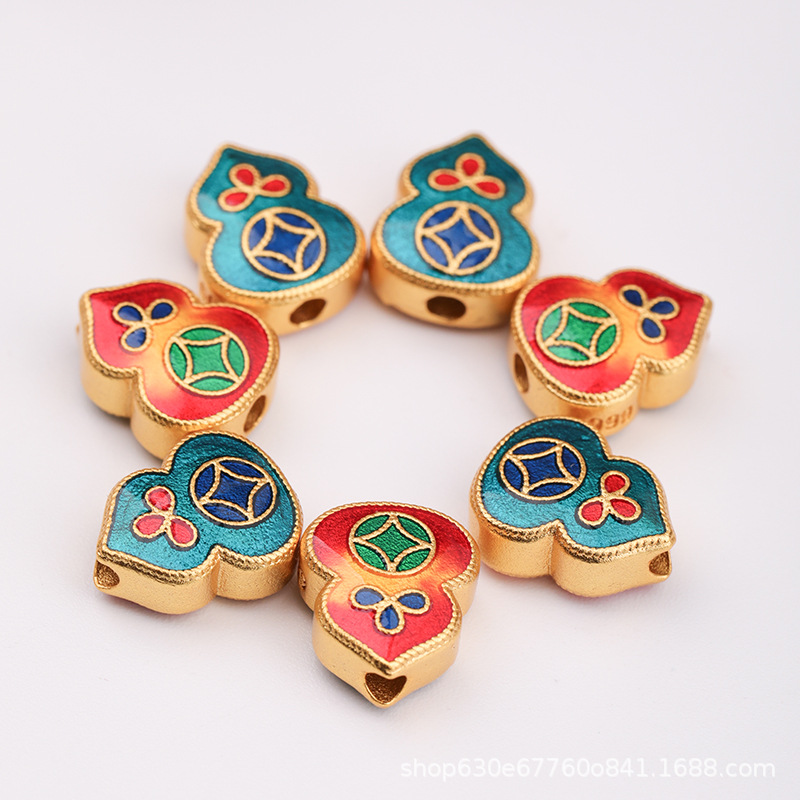 Diy合金両面滴油景泰藍祥雲隔珠瓢箪ブレスレットネックレス穿孔部品