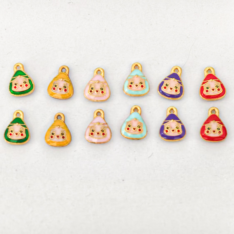 オイルドリップスマイリーフェイス団子ベビーチュニクビーズ端午節立体小さな団子スルーホールペンダントカラフルなハンドロープチェーンペンダント