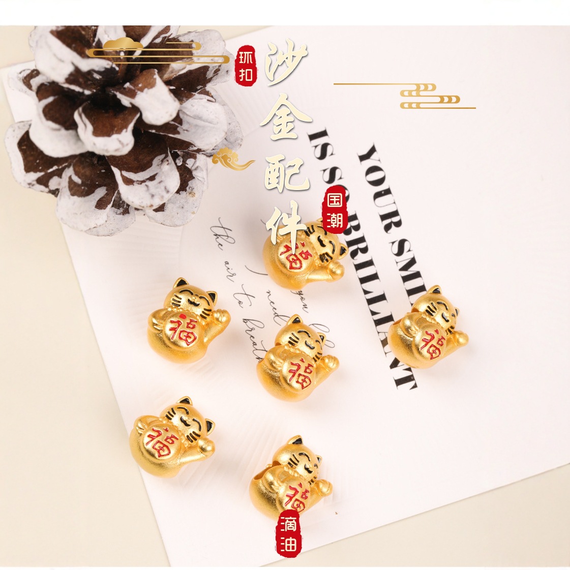 古法金滴油小ペンダントdiyアクセサリー招財納福ブレスレット手串ネックレスアクセサリー卸売り