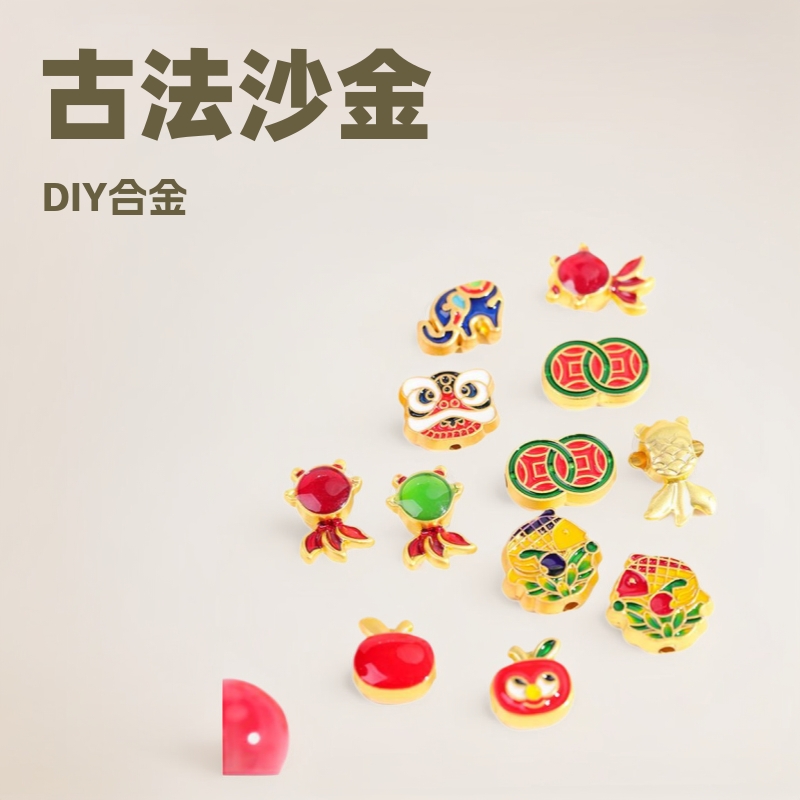 古法沙金diy合金子供金魚覚醒ライオン端午の鎖穿孔散珠DIYビーズ服装部品