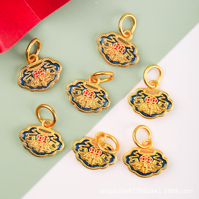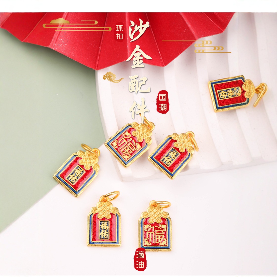 国潮古法メッキ砂金如意錠福牌数字6順8発ペンダントDIYビーズネックレスブレスレット部品