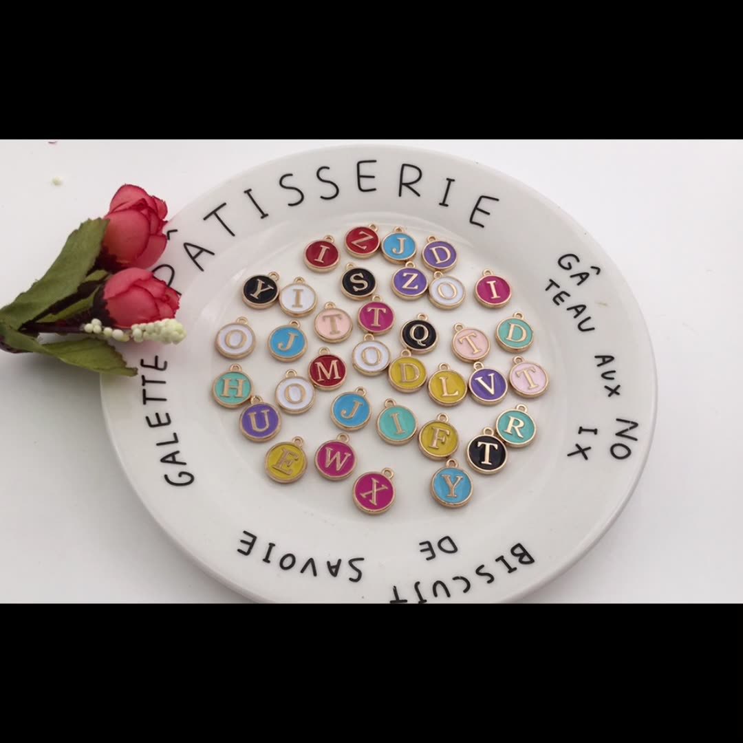 Diy両面ドリップオイル26アルファベットアクセサリーアクセサリーブレスレットネックレス合金アクセサリーピアスペンダント