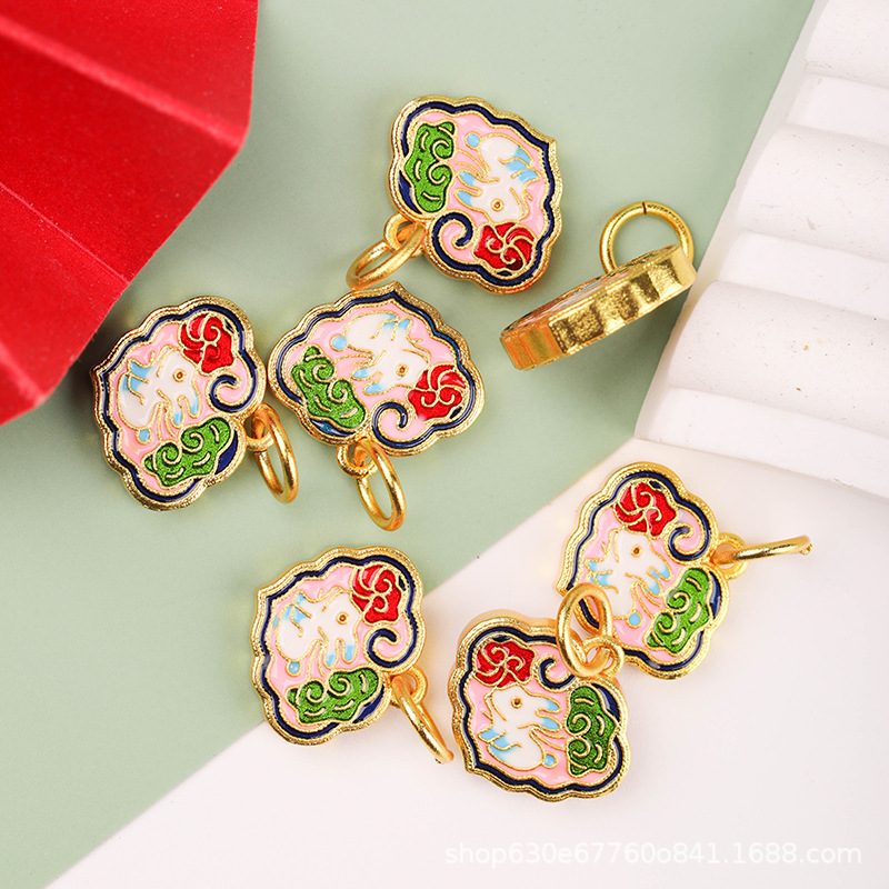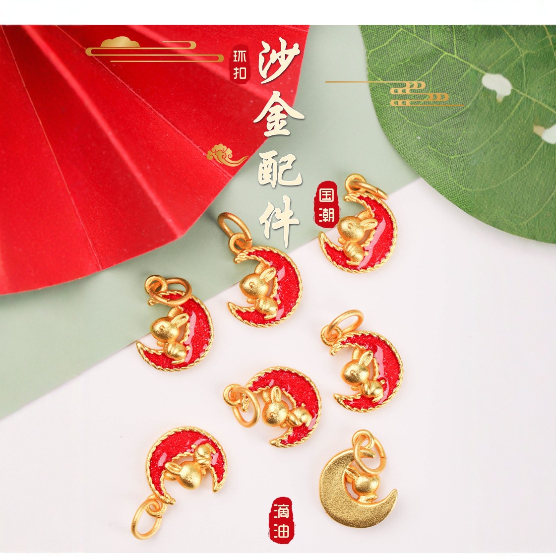 DIYアクセサリーアクセサリーブレスレットペンダントネックレスアクセサリー古法沙金月ウサギ個性国潮滴油ペンダント