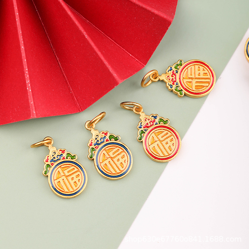 古法金メッキ保色福字ペンダントネックレス部品diyペンダント中国式福字ペンダント卸売り