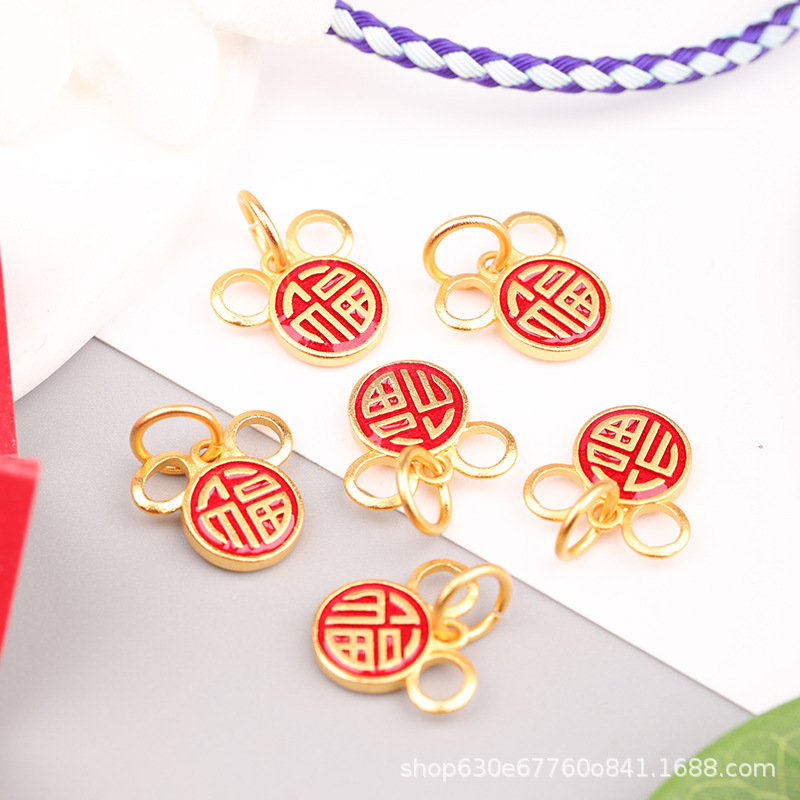 Diyアクセサリーアクセサリーブレスレットペンダントネックレスアクセサリー古法沙金福字異型個性国潮ペンダント保色