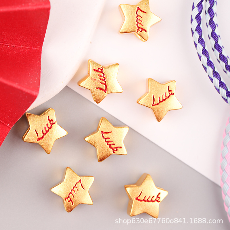 沙金英語五角星手縄ブレスレットネックレスdiy転送ビーズ大穴部品通孔手作りビーズ