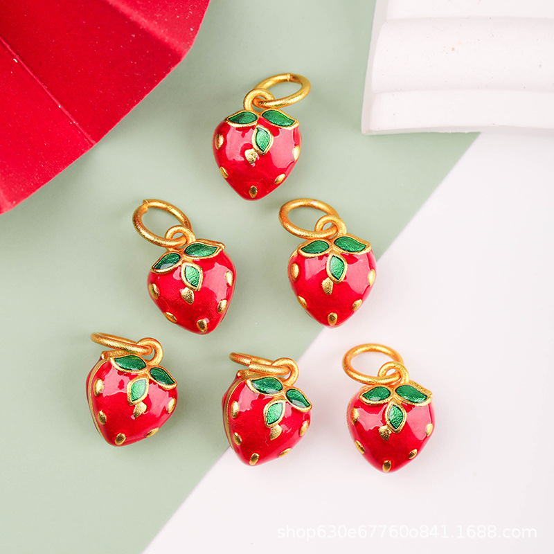 古法沙金果物小提溜アクセサリー滴油小いちごdiy合金いちごストラップ手作りアクセサリー
