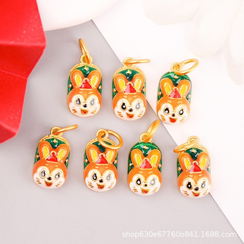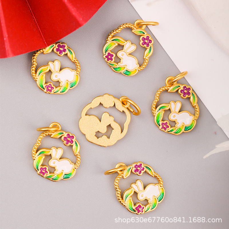 古法金福字玉兎保色ペンダント手作りdiyネックレスブレスレット中国風玉兎合金部品保色