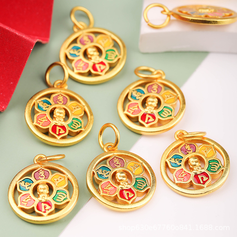 古法唖金六字箴言円珠六字真言福字ペンダント編み唐カードネックレスブレスレットメーカー卸売り