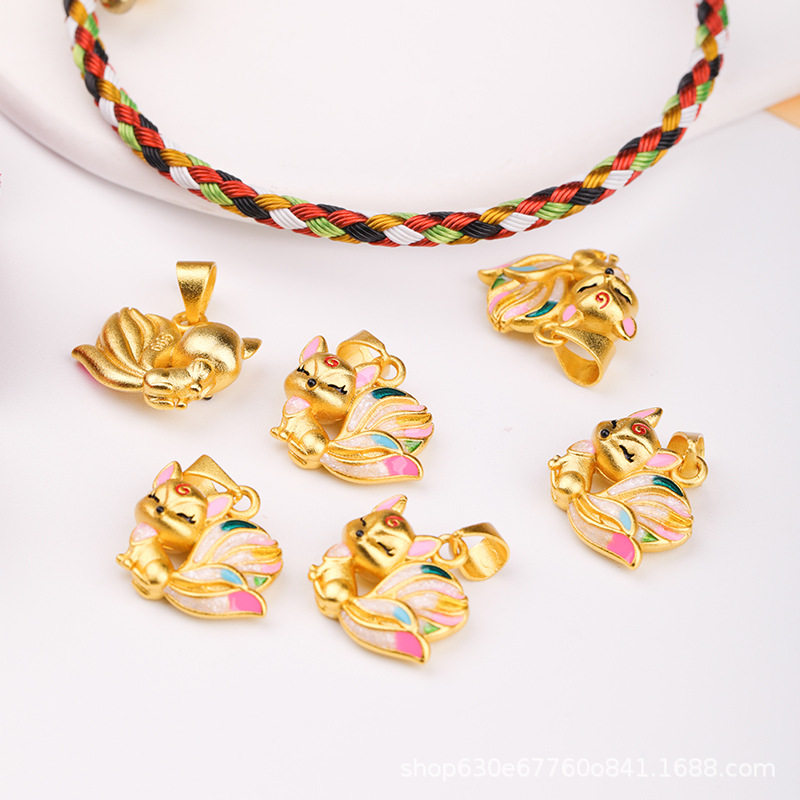 久々に色落ちしない古法金滴油九尾狐ネックレスペンダントカラフル狐ブレスレットdiy手作りアクセサリー