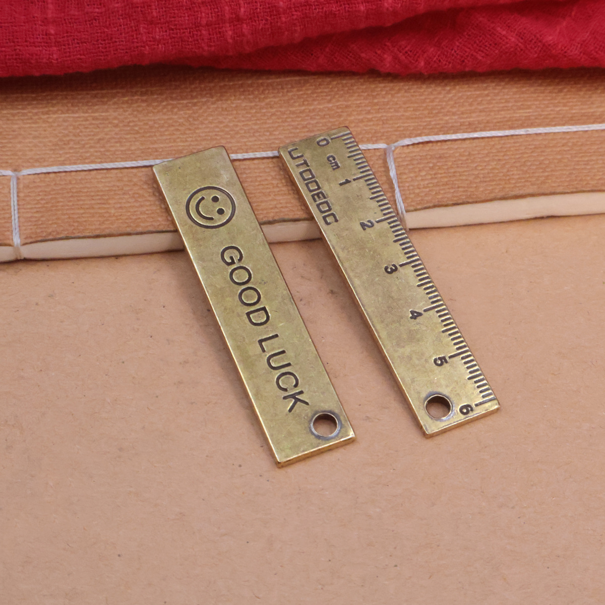 真鍮のまっすぐな物差しのキーホルダーのペンダントの幸運な笑顔の装飾品の小さい戒尺はキーホルダーのペンダントを携帯します。