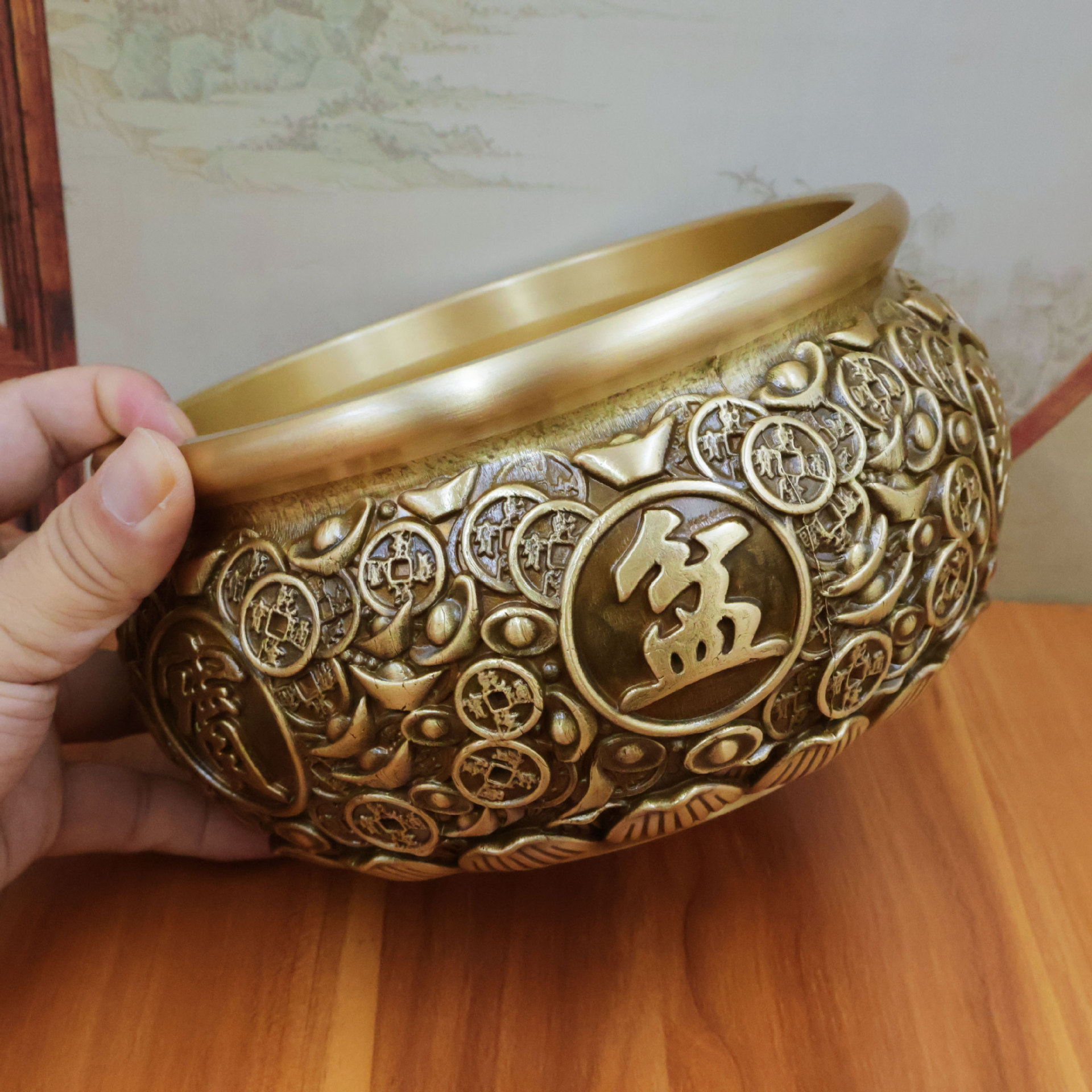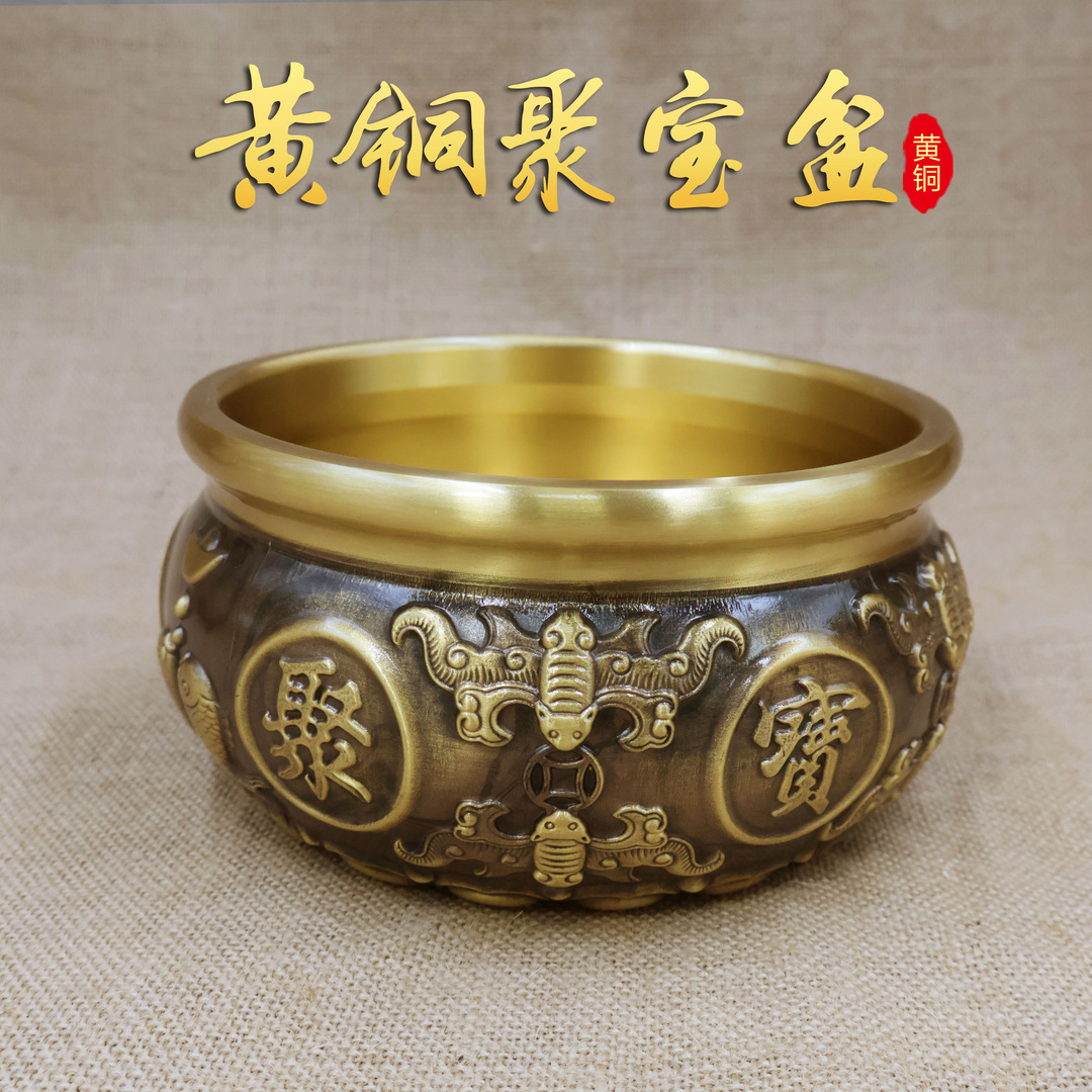 中実黄銅招財双魚聚宝盆置物中国式家庭客間玄関装飾工芸品置物プレゼント