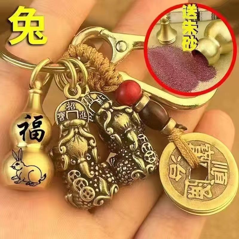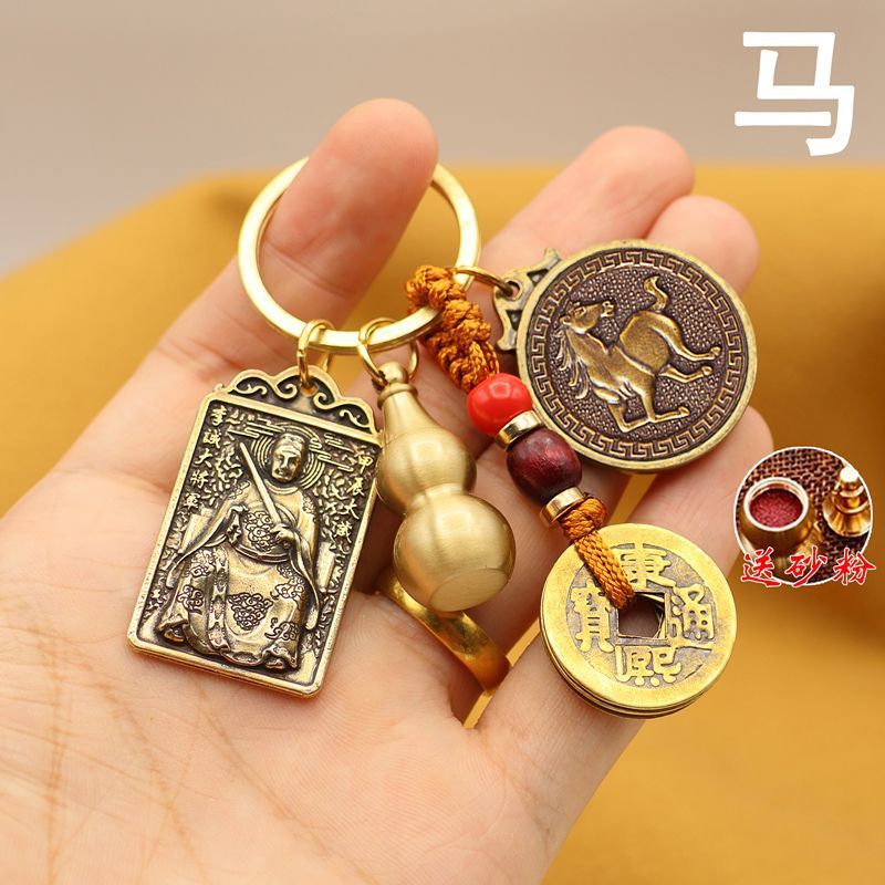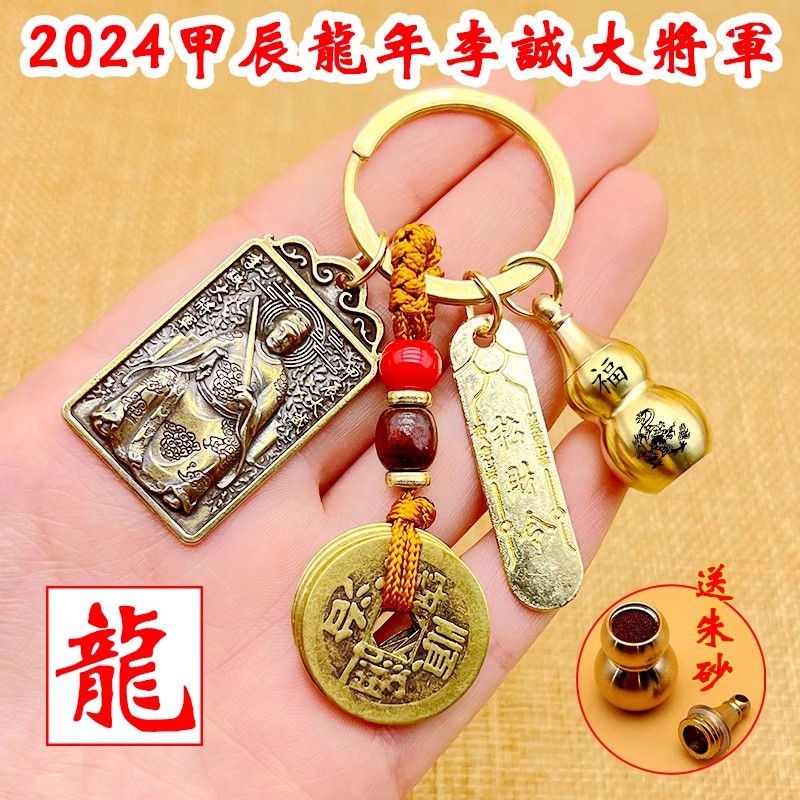 黄銅2024年龍年太歳牌十二生肖ひょうたんキーホルダー五帝銭招米輸送バッグストラップ