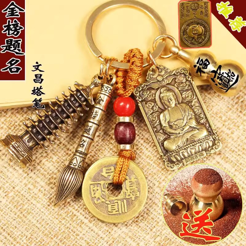 銅文昌塔金榜題名筆キーホルダーペンダント状元筆学生試験プレゼント生肖守護神ペンダント