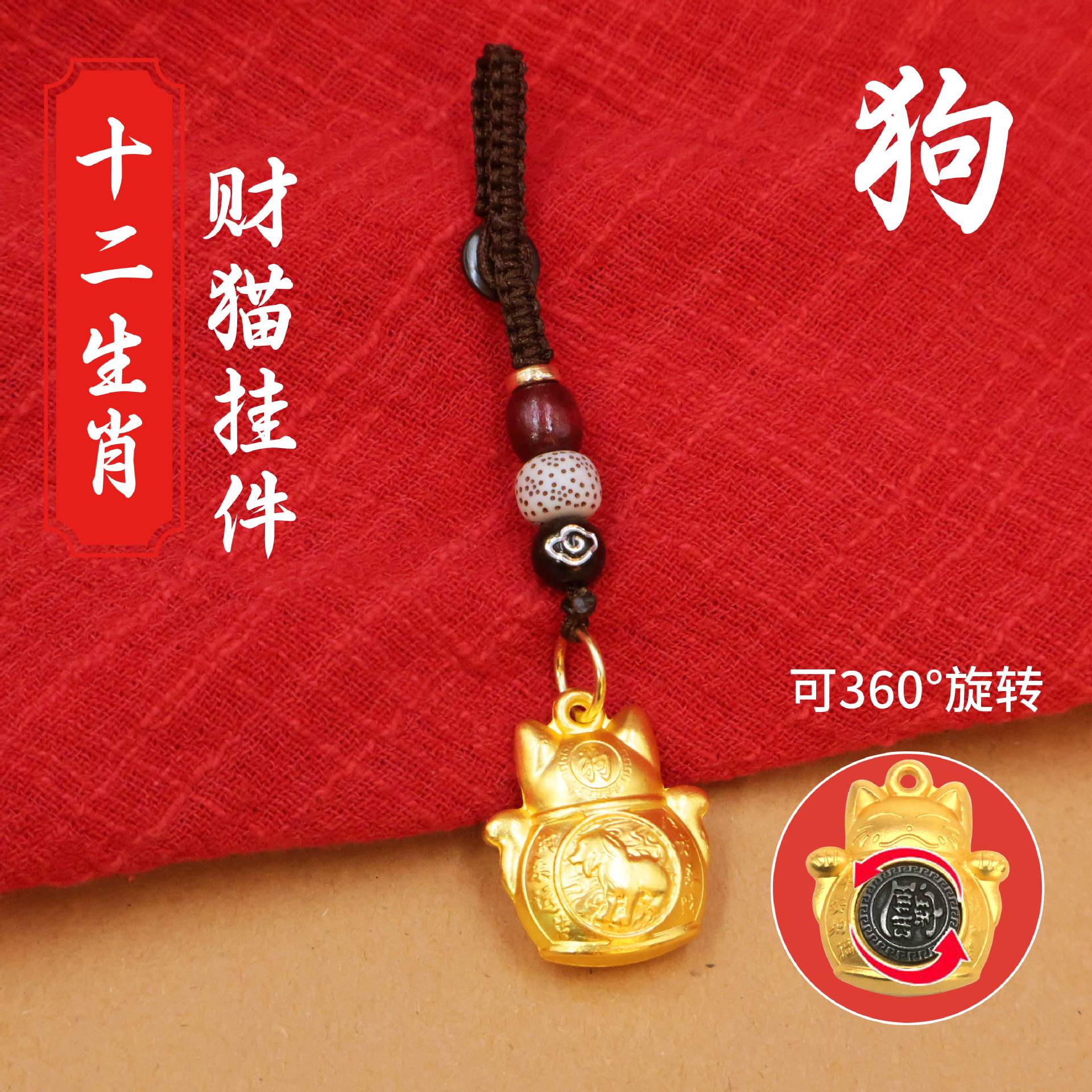 新型十二生肖招財猫回転自動車キーホルダーペンダント招財入宝回転キーホルダー龍年プレゼント