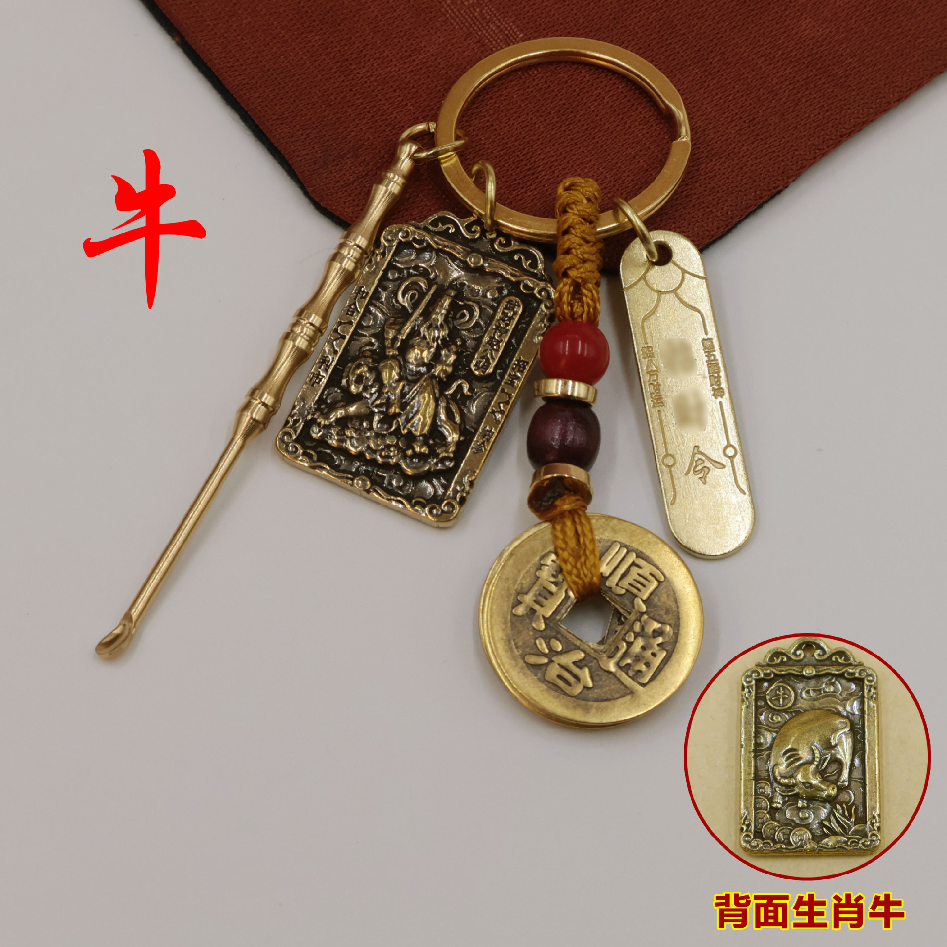 黄銅十二生肖守護神本命仏五帝銭キーホルダー八大守護神車ストラップバッグペンダント