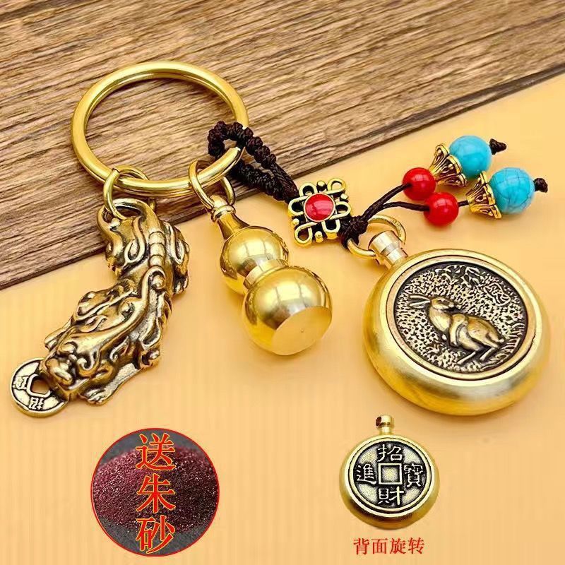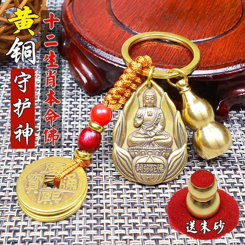真鍮十二生肖八大守護神本命仏キーホルダー朱砂ひょうたん自動車キーペンダント